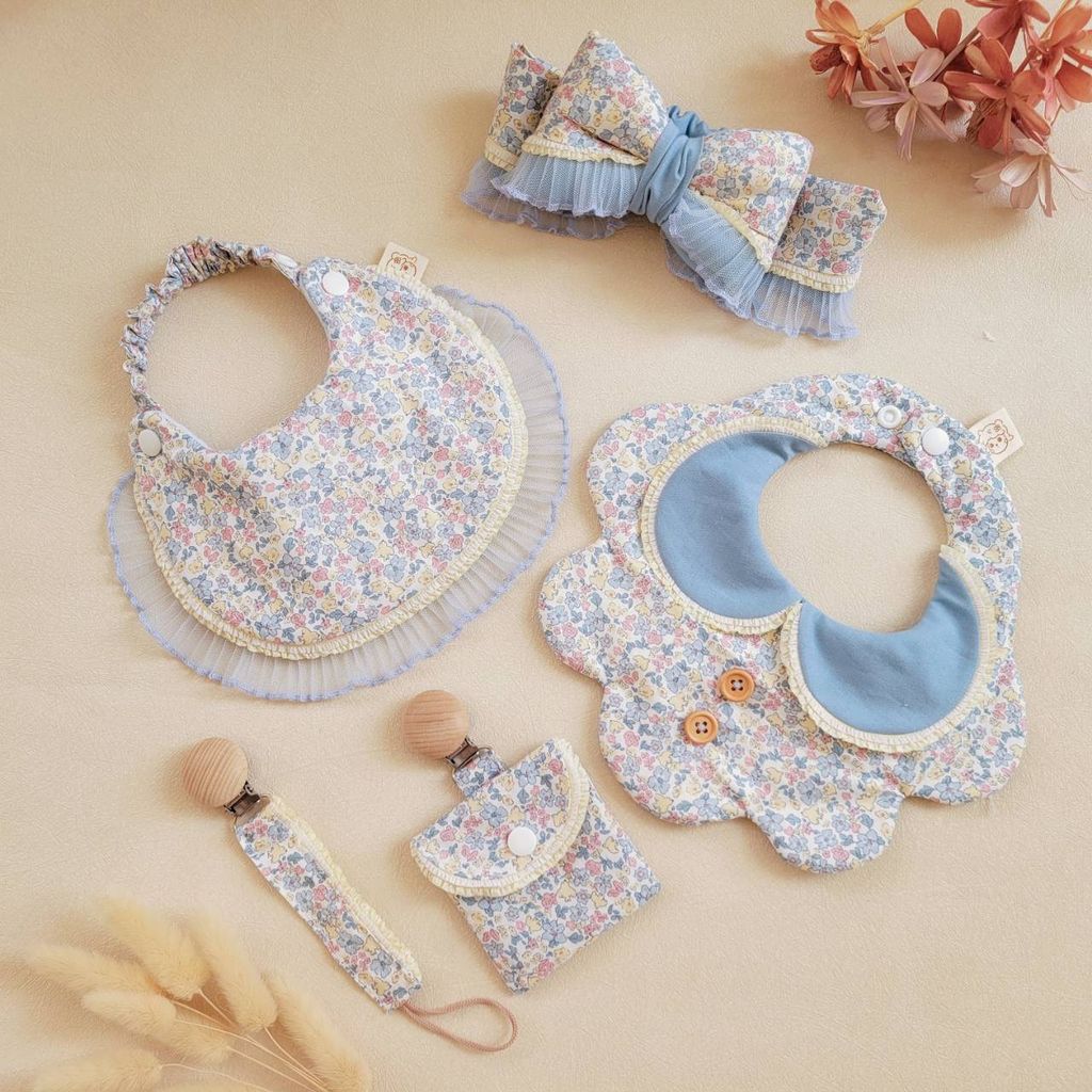 [小薑餅手作 ] 手作圍兜 - 春日藍鈴/韓國布